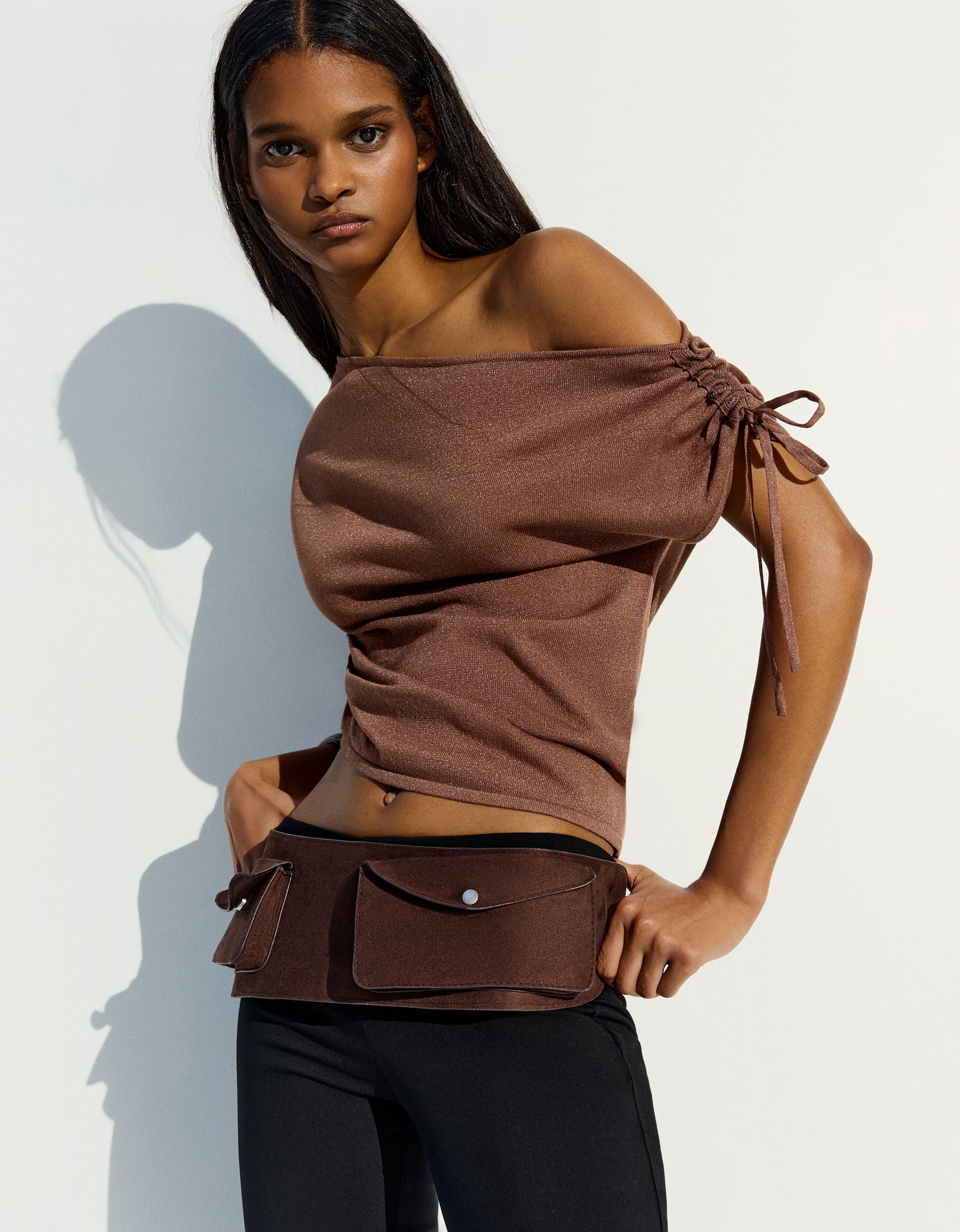 Asimetrik tişört, basit ama dikkat çekici detaylarla dikkat çeken bir parçadır. Uzun govdeli tipler için idealdir çünkü vücut hatlarını dengeli şekilde ortaya koyar. Kısa boy ve ince yapılı bireyler için de çok şık bir seçenek olabilir; omuz kenarları hafifçe açık olduğu için gövdeyi daha dolgun gösterir. Yaz aylarında güneşli günlerde, beyaz tisortle ve yüksek bel jeans ile kombinleme yaparak rahatça sokaklara çıkabilirsin. Aynı tişörtü, siyah deri kemer ve beyaz sneaker ile tamamlayarak ofis-sonrasi bulusmalarda da şık görünürsün. Sonbahar mevsiminde ise koyu tonlu pantolon veya kaban altına giyerek daha sıcak bir havayla uyum sağlayabilirsin. Renk olarak brown ve rust tonları, doğal ve ılık bir atmosfer yaratır. Aksesuar olarak, altın rengi bileklik veya küçük halka kolye tercih edebilirsin. Bakım açısından, katlanmadan asmalı ve nemli ortamlardan uzak tutmalı. İç katman olarak da kullanılabilir, bu da onu her mevsimde kullanmanı kolaylaştırır.