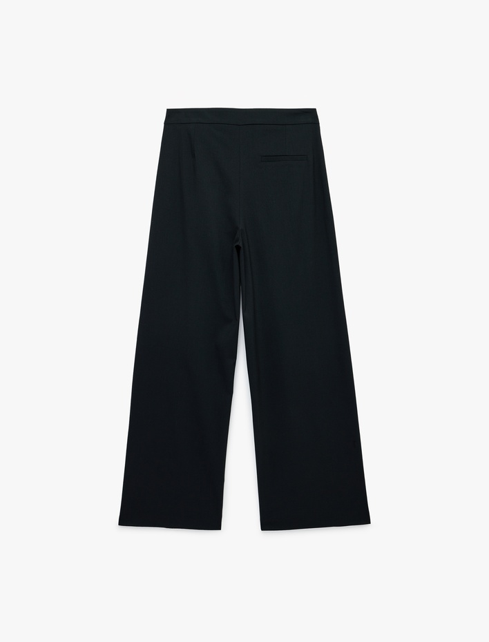 Beli Bağlamalı Regular Fit Düz Paça Viskon Karışımlı Pantolon