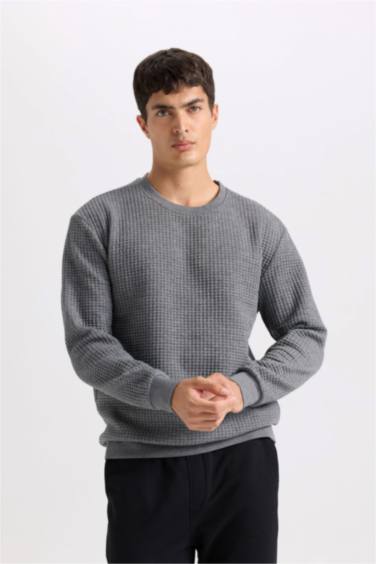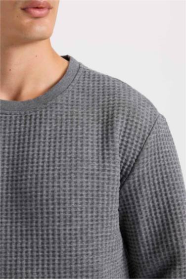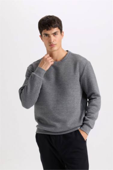 Gri Regular Fit Bisiklet Yaka Jakarlı Sweatshirt