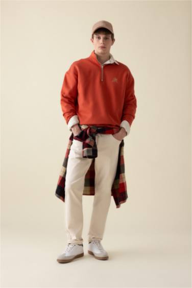 Comfort Regular Fit Rahat Kalıp Fermuarlı Dik Yaka Baskılı Sweatshirt
