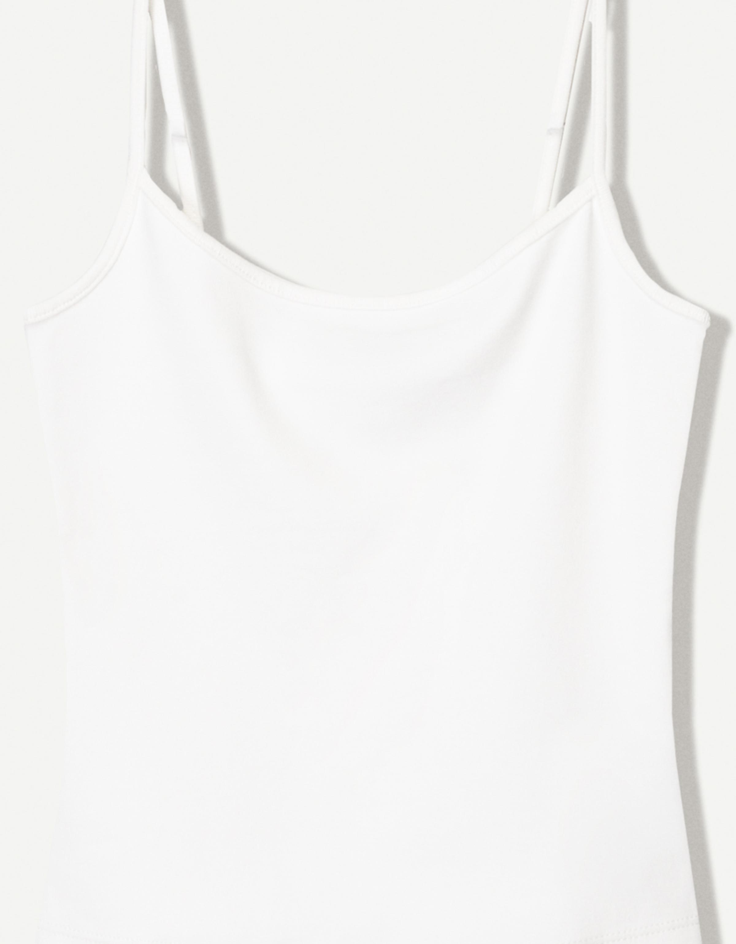 Beyaz bir askılı top, temiz hatlara sahip olmasından dolayı her kıyafete uyum sağlar. Uzun gövdeli tipler için idealdir çünkü vücut hattını dengeler ve daha uzun görünüm sağlar. Gün içinde ofis-sonrası buluşmalarda veya yürüyüşlerde rahatça giyilebilir. Beyaz tisörtle ve yüksek bel jeans ile kombinleme, casual bir günlük tarz oluştururken, açık omuzlu bluzla da daha şık bir akşam tarzına dönüşebilir. Renk olarak beyaz, her rengi kabul eder; siyah deri kemer ve beyaz sneaker ile tamamlayarak minimalist bir dokunuş ekleyebilirsin. Kuru temizlik önerilir ve katlanmadan asılmalıdır. İç katman olarak da kullanılabilir, böylece farklı kombinlerle tekrar tekrar giyilebilir.