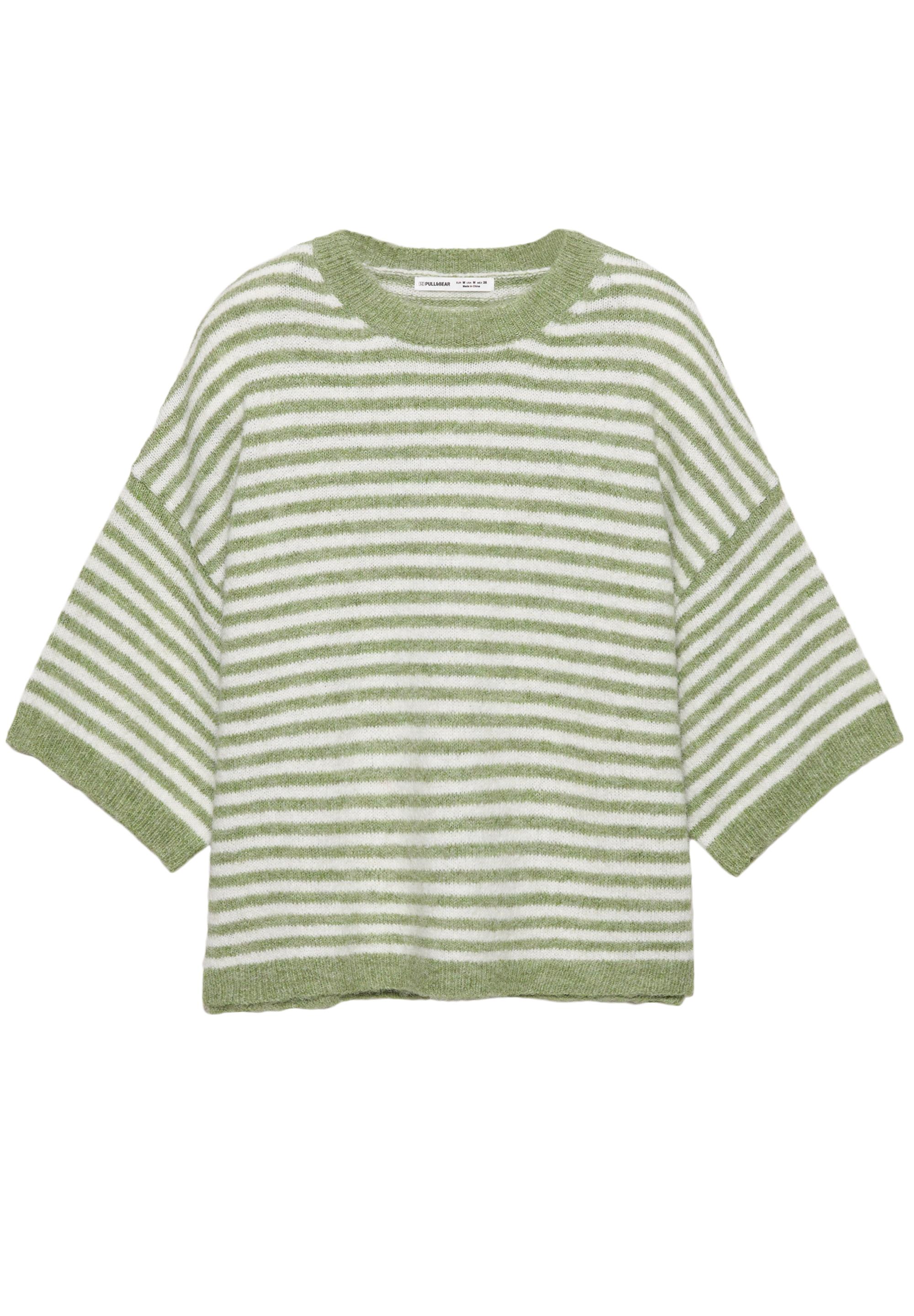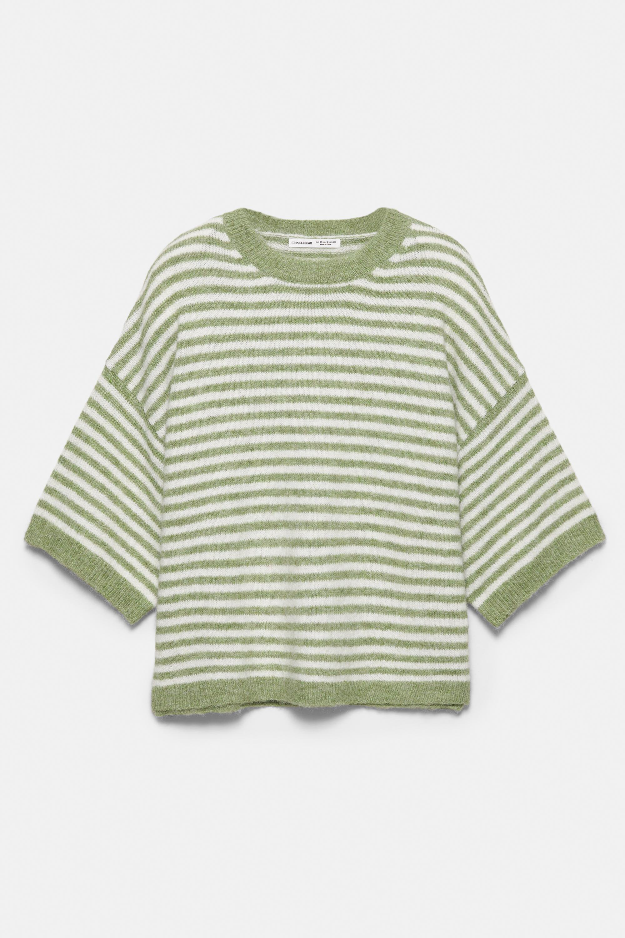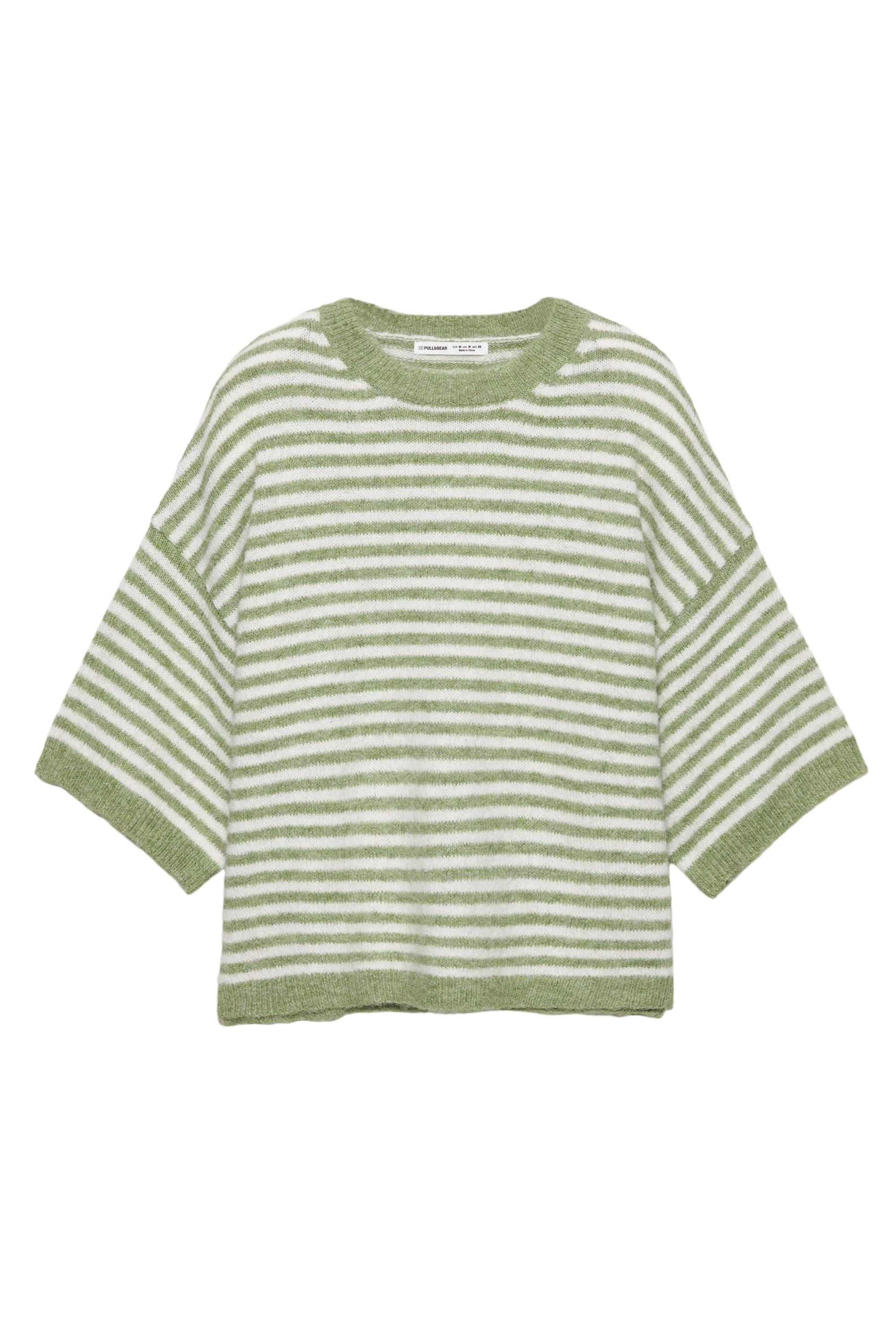 Bisiklet yaka ve ribana detaylı, kısa kollu salaş kesim süveter.