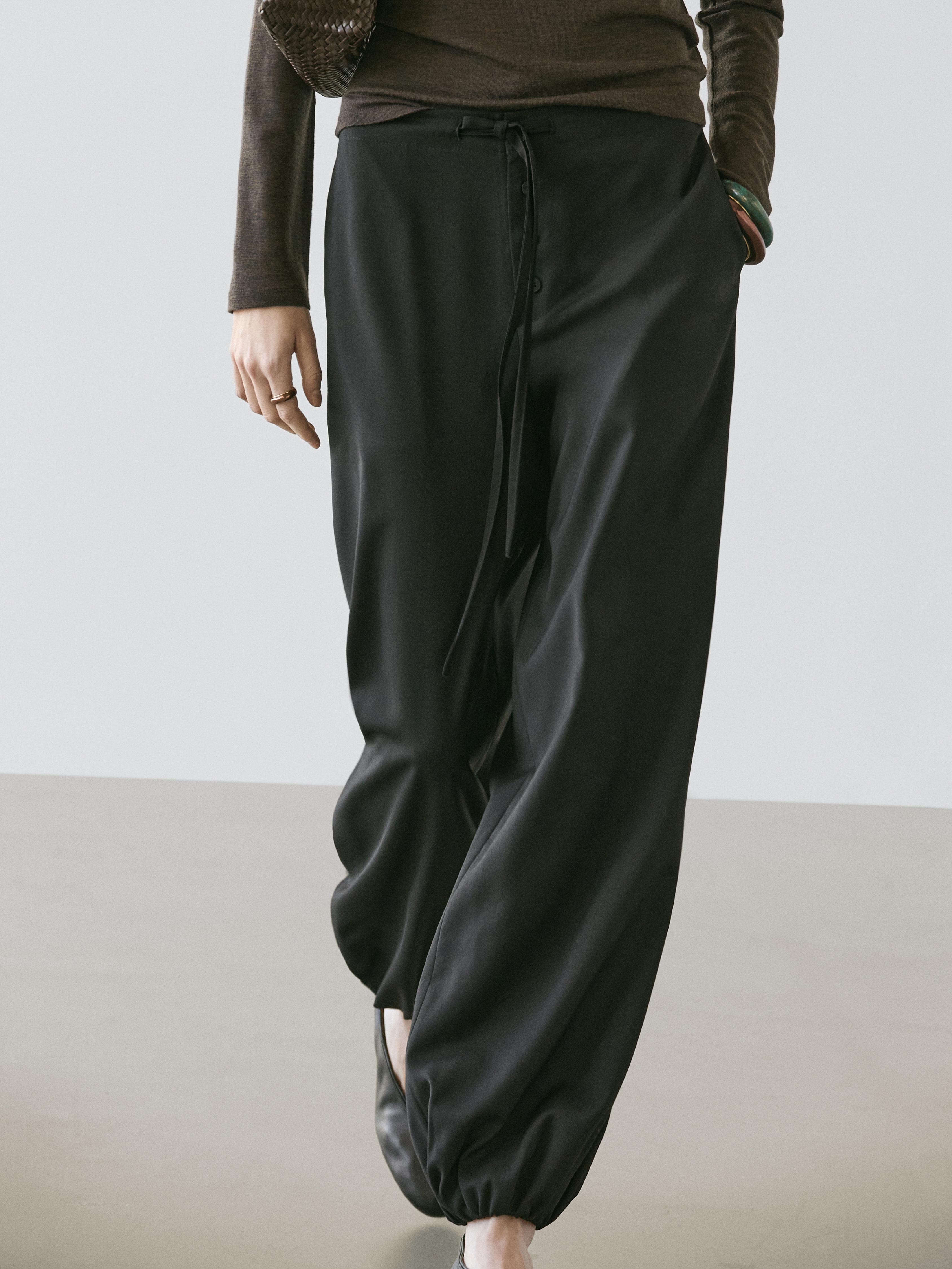 Bağcıklı yün şalvar pantolon