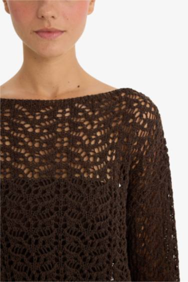 Regular Fit Kayık Yaka Ajurlu Kazak — defacto | Oneri