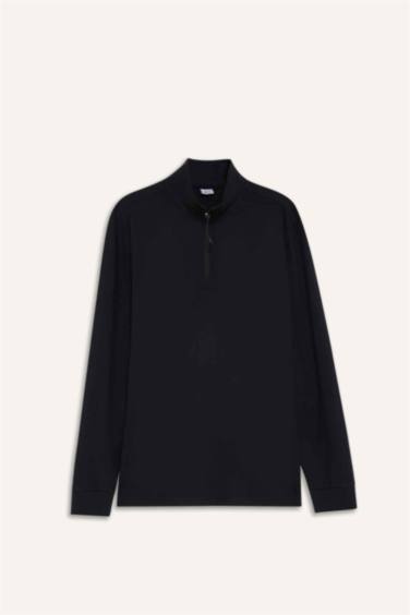 Standart Fit Dik Yaka Yarım Fermuarlı Polar Sporcu Sweatshirt