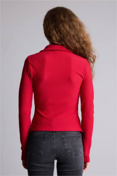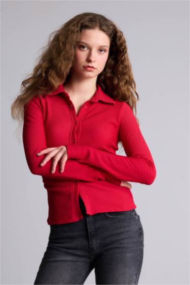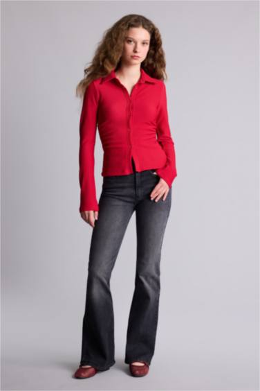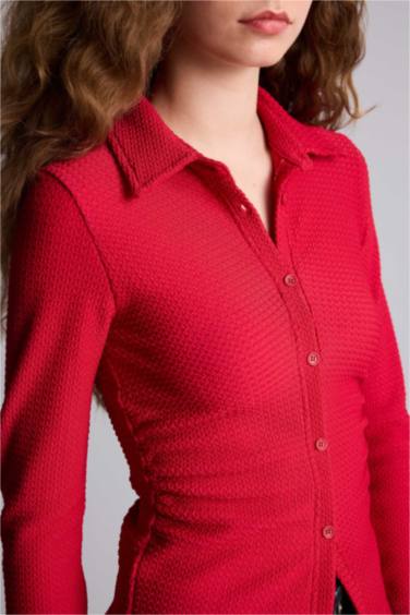 Fıtted Gömlek Yaka Bürümcük Uzun Kollu Gömlek