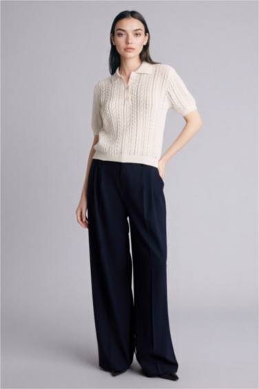Regular Fıt Polo Yaka Ajurlu Triko Kazak