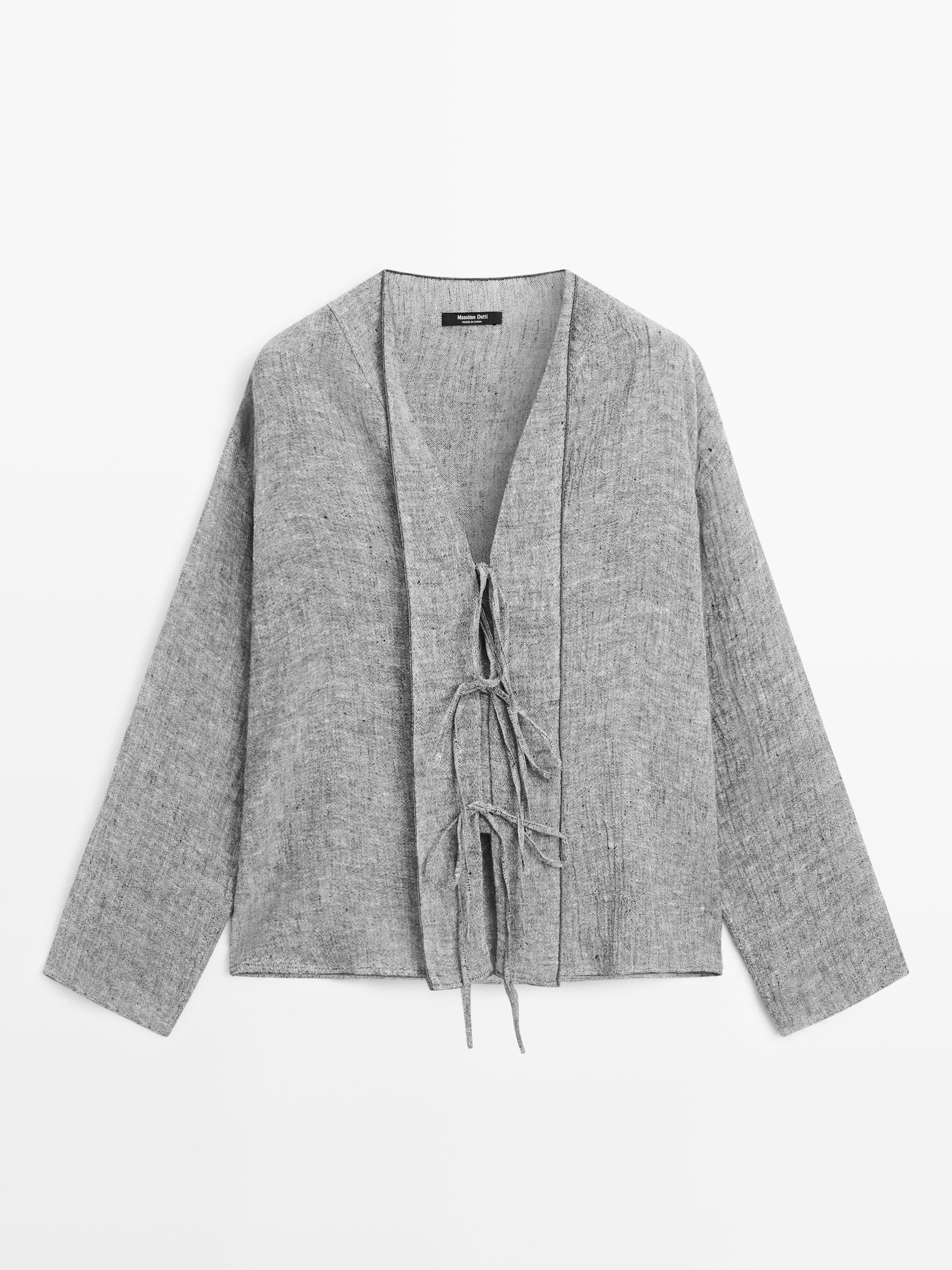 Fiyonk detaylı keten karışımlı bluz