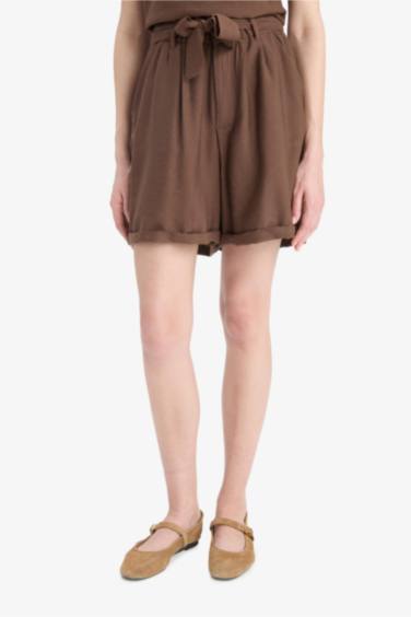 -%10Yüksek Bel Krinkıl Kumaş Şort