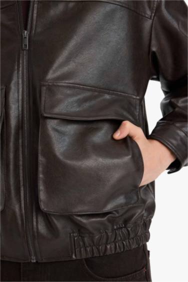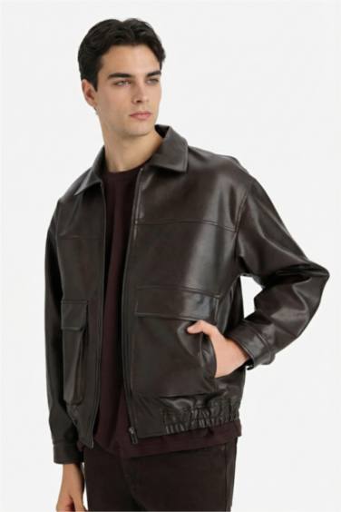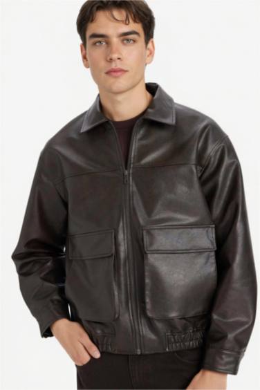 Oversıze Gömlek Yaka Fermuarlı Suni Deri Mont — defacto | Oneri