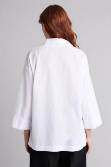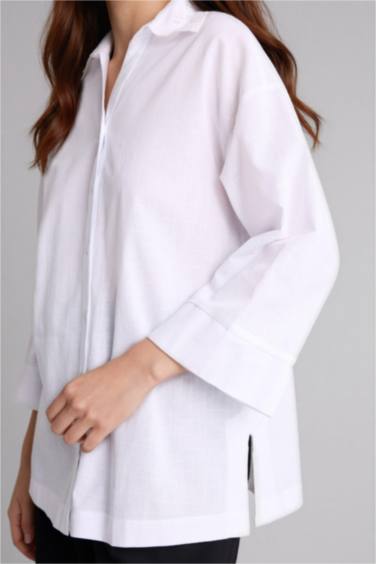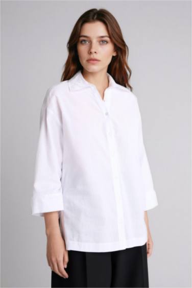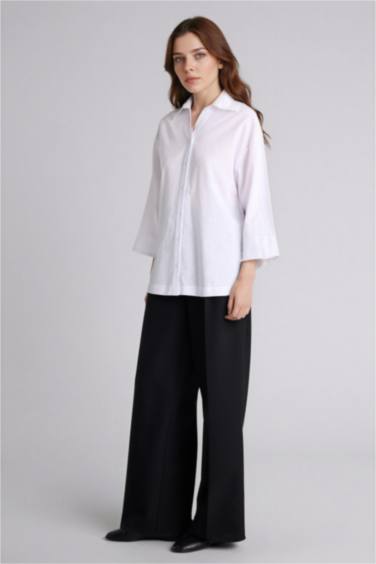 Regular Fıt Gömlek Yaka Flamlı Pamuk Uzun Kollu Gömlek