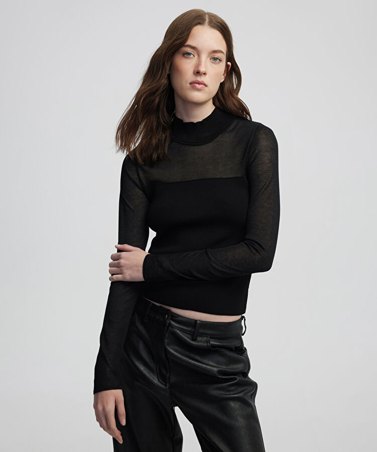 Transparan mix yüksek yaka triko