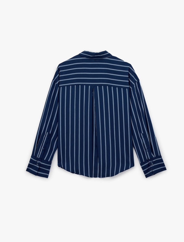 Viskon Kumaş Regular Fit Uzun Kollu Çizgili Gömlek