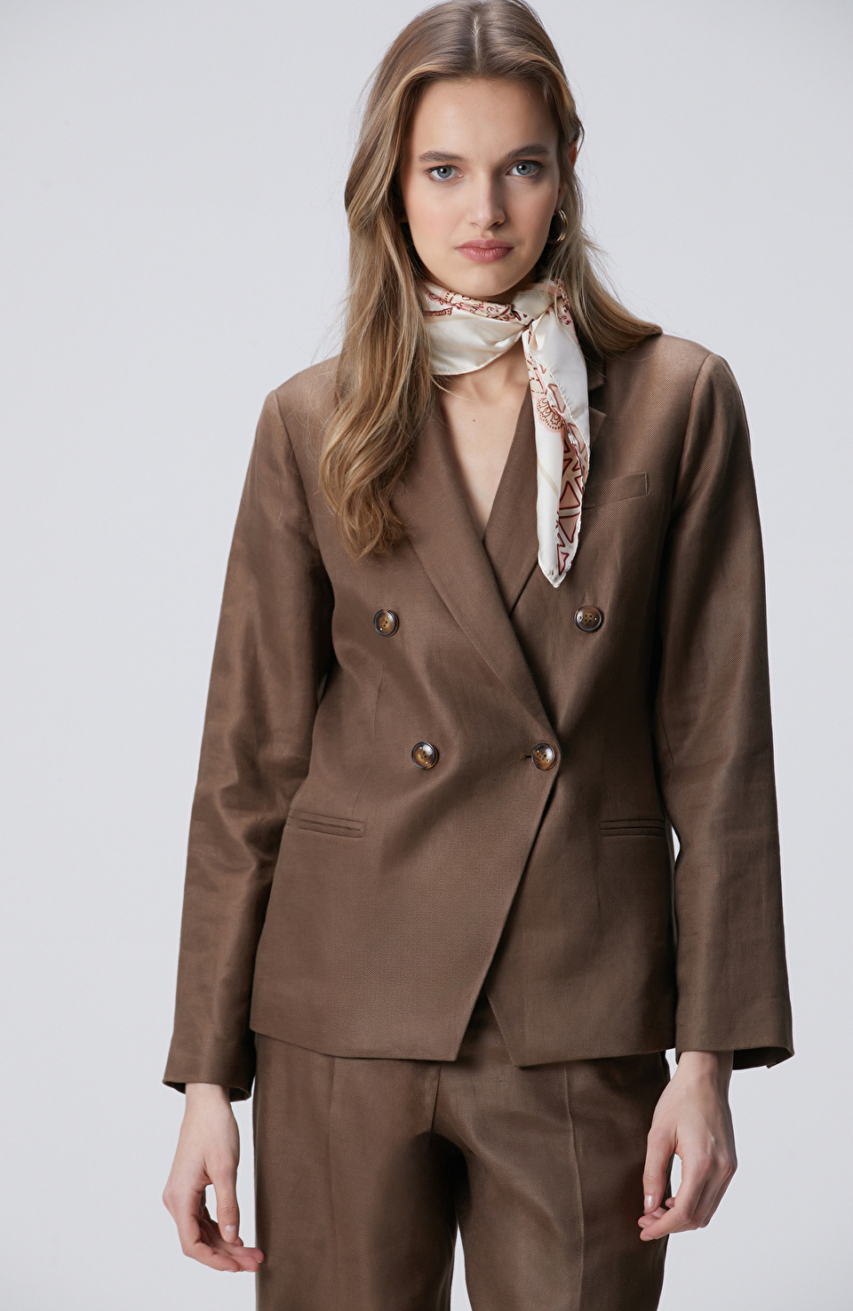 Bu keten ceket, temiz ve sade bir estetikle dikkat çeken bir parçadır. Uzun govdeli tipler için idealdir; omuz hizasına kadar uzayan kollari ve basit yapisiyla vucudun dogru orantilariyle uyum saglar. Krem rengi versiyonu, ılık sonbahar günlerinde ofis-sonrasi bulusmalarda veya yemek ziyafetlerinde şık bir kapama sunarken, kahverengi alternatif ise daha kararli bir görünüm isteyenler için harika bir secimdir. Beyaz tisortle ve yuksek bel jean ile kombinleme, günlük kullanımda rahat ama dikkat çekici bir tarz oluşturur. Aynı zamanda, açık yaka bir bluz ve siyah pantolonla da eleganslı bir akşam kıyafeti oluşturabilirsin. Siyah deri kemer ve beyaz sneaker ile tamamlayarak modern bir dokunuş ekleyebilirsin. Ceket, katlanmadan asmali ve nemli ortamlardan uzak tutulmalidir. İç katman olarak da kullanılabilir; hafif bir sıcaklık sağlar.