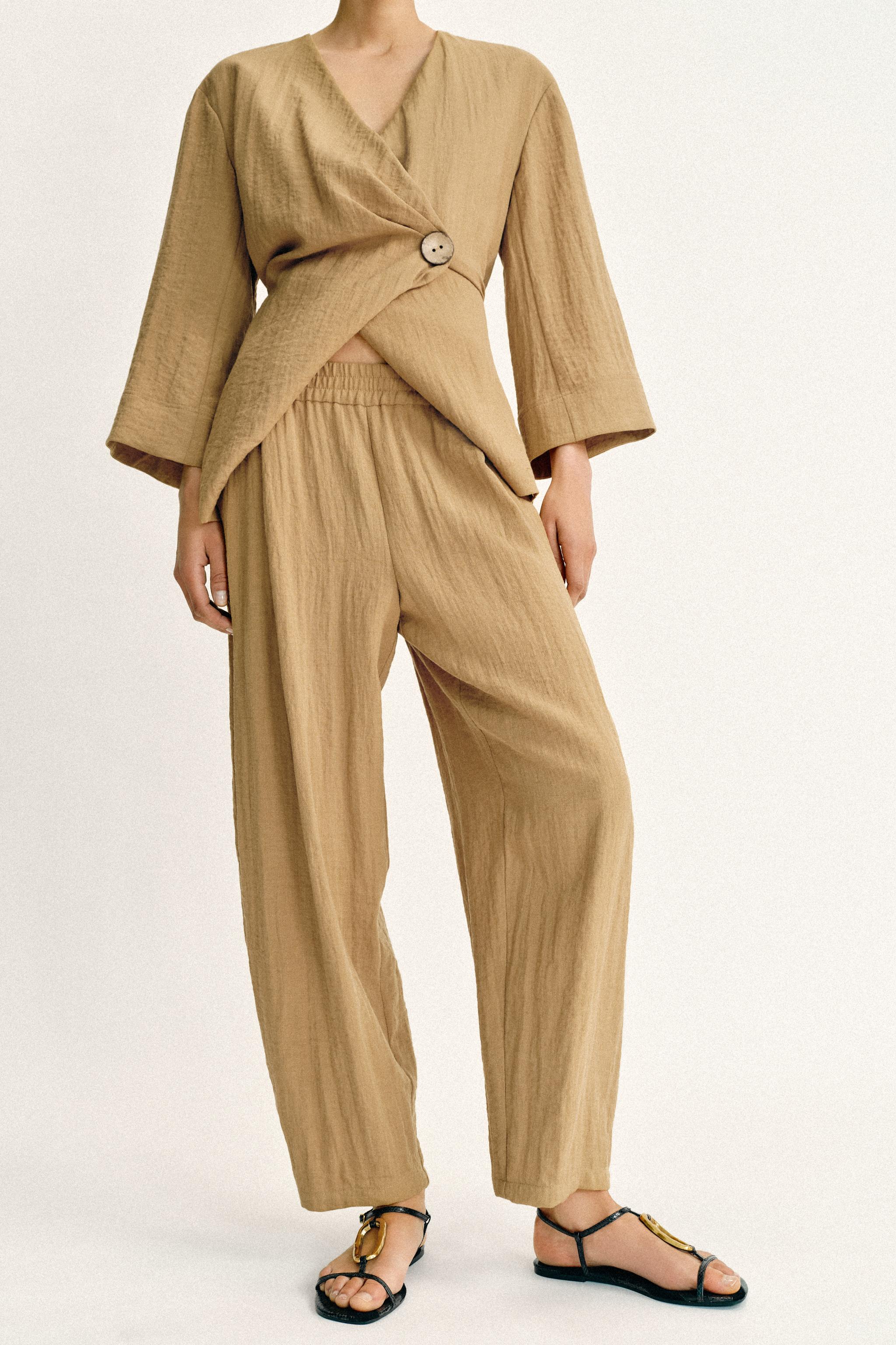 LASTİK BELLİ DÖKÜMLÜ PANTOLON TAKIMI