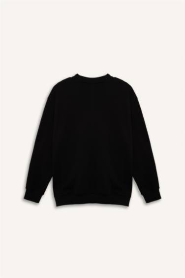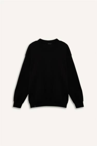 Boxy Fıt Büyük Beden Bisiklet Yaka Pike Sweatshirt