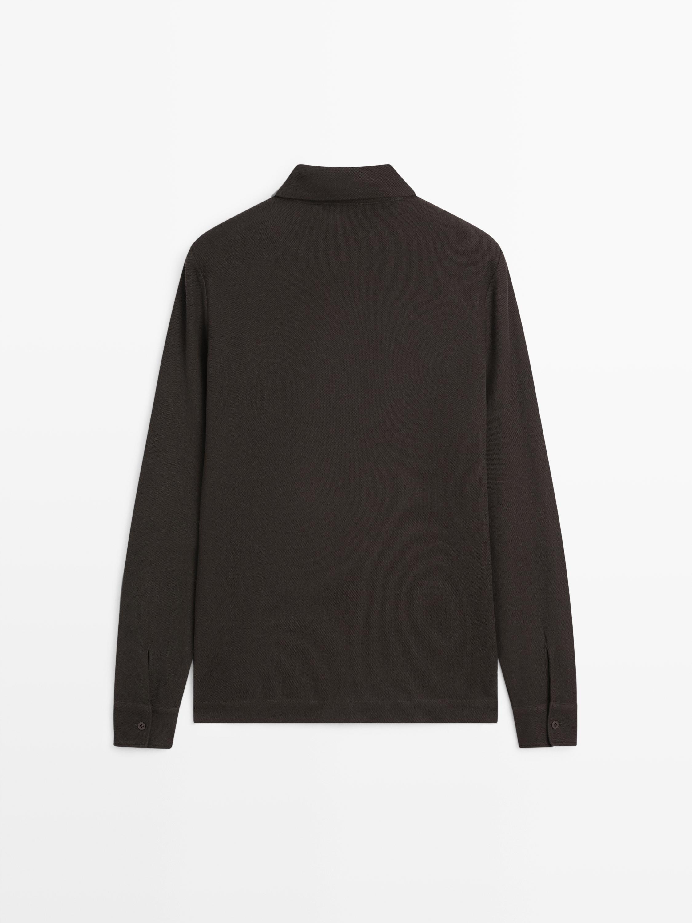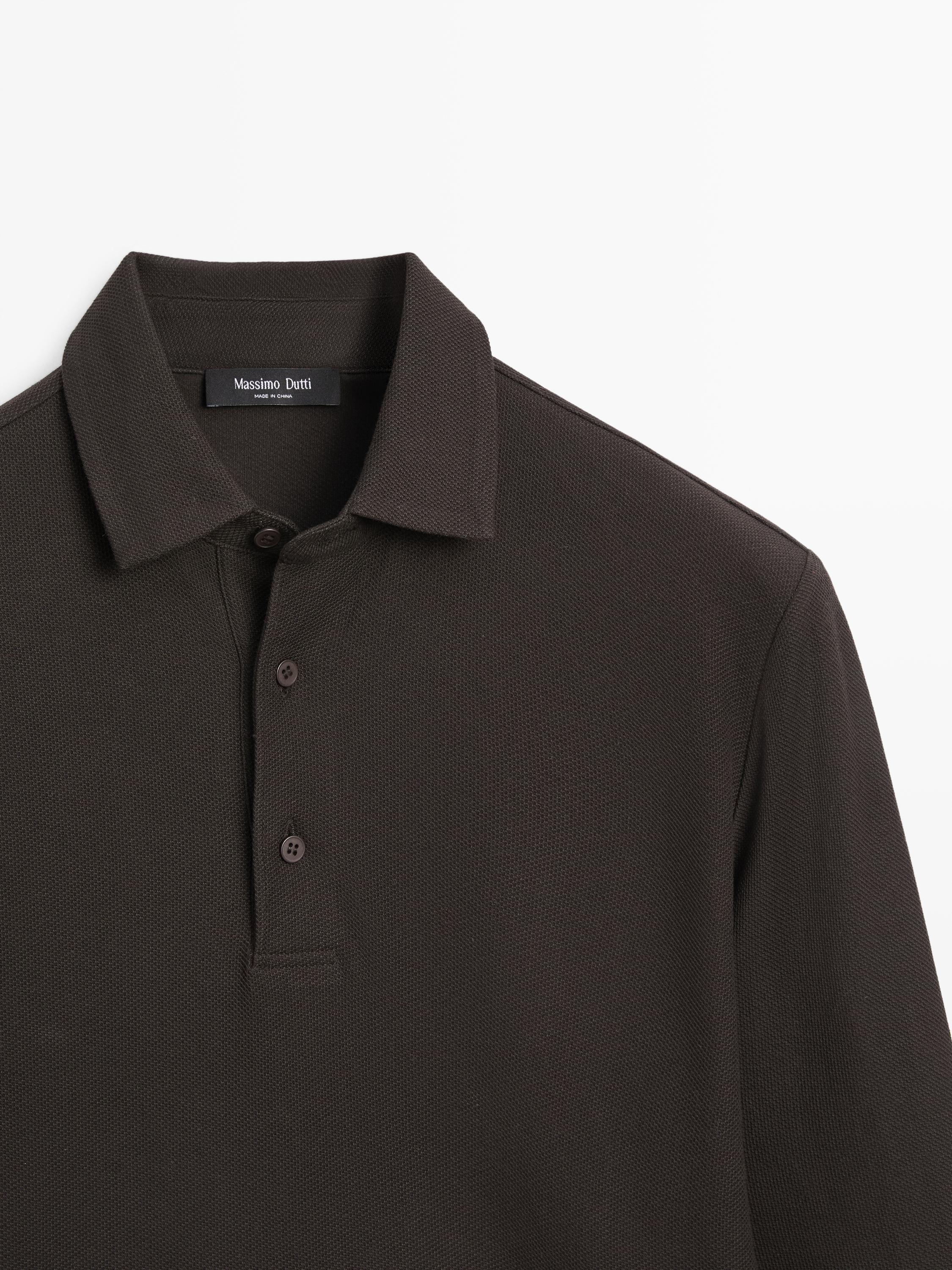 Dokulu uzun kollu polo yaka t-shirt