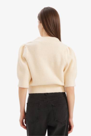 Fitted V Yaka Düğmeli Kısa Kollu Triko Hırka — defacto | Oneri