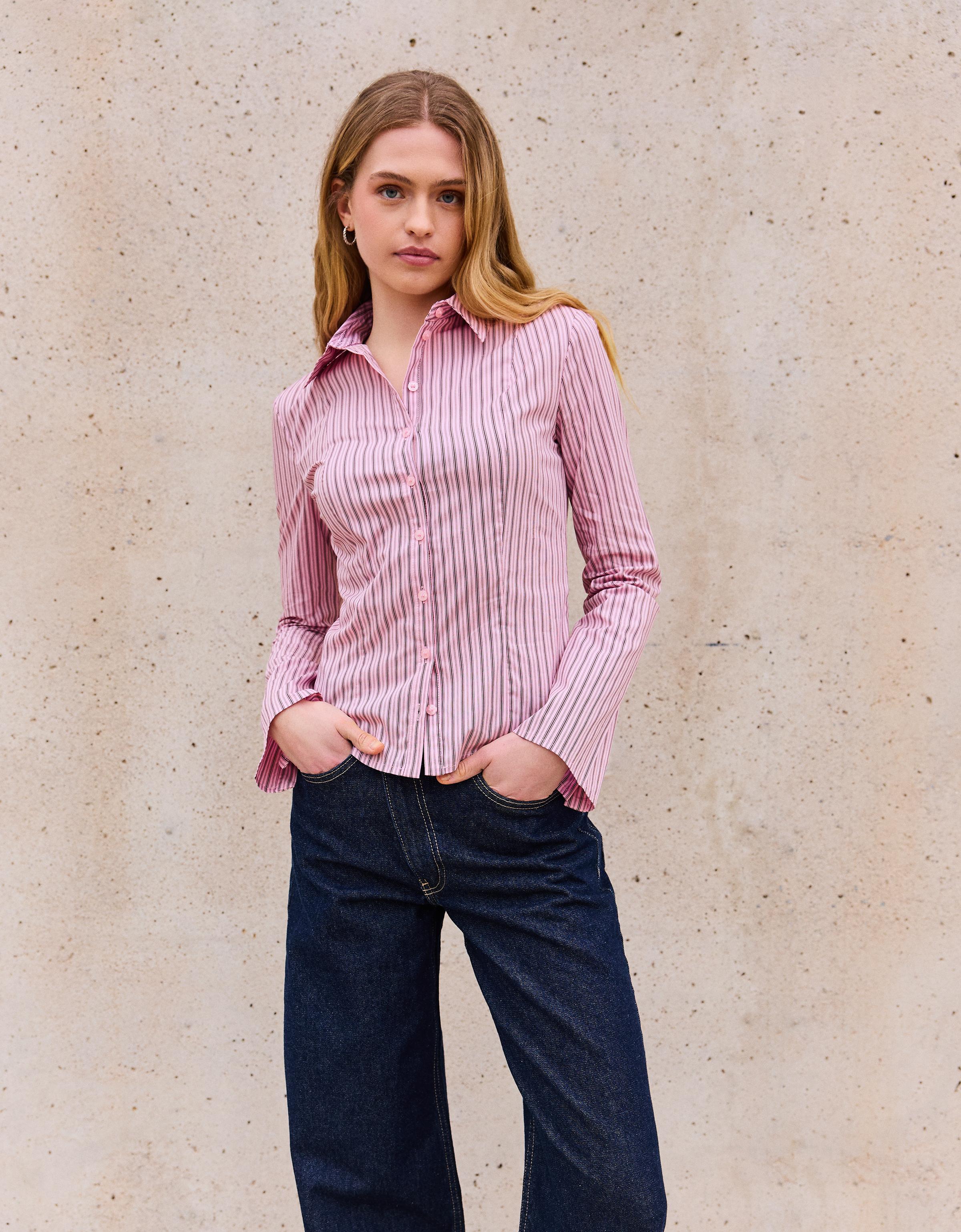 Bu bershka gömleği, temiz ve sade çizgilerle dikkat çeken bir parçadır. Dar kesimiyle vücut hatlarını hafifçe vurgularken, kollu yapısı da konforla estetik arasında dengeli bir noktaya oturur. Açık pink rengi, gün ışığında hafif bir ışık tutarken, siyah rengi ise daha ciddi ve şık bir görünüm sunar. Uzun govdeli tipler için idealdir; omuzları dengeleyerek daha dengeli bir boyut verir. Yaz mevsiminde ofis-sonrasi bulusmalarda veya bahar aksamı yürüyüşlerinde kullanmak çok uygun. Beyaz tisortle ve yüksek bel jeans ile kombinleme, rahat ama stilize bir günlük look oluşturur. Aynı zamanda siyah deri kemer ve beyaz sneaker ile tamamlayarak daha şık bir akşam kıyafeti de olabilir. Kuru temizleme önerilir, katlanmadan asılı tutulması giysinin şeklini korur. İç katman olarak da kullanılabilir, sıcak havalarda hafif bir kaplama olarak işe yarar.