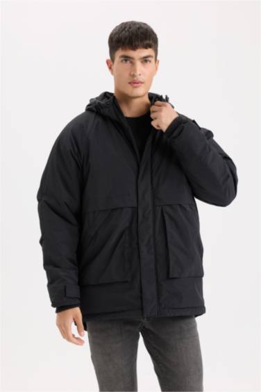 Regular Fit Kapüşonlu Fermuarlı Cepli Mont