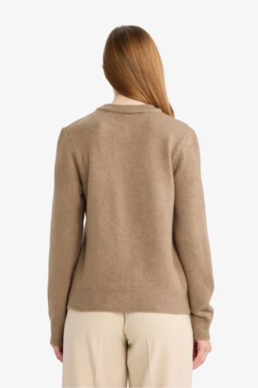 Regular Fit Bisiklet Yaka Düğmeli Taşlı Triko Hırka