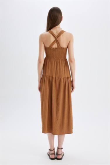 Kare Yaka Askılı Midi Elbise