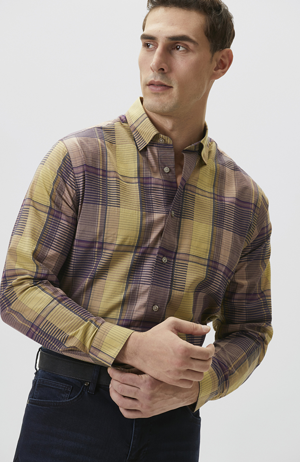 Relaxed Fit Bordo Haki Ekoseli Gömlek