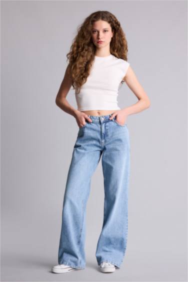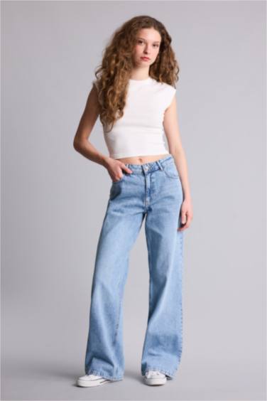 Low Rıse Wıdeleg Düşük Bel Uzun Jean Yıkamalı Pantolon