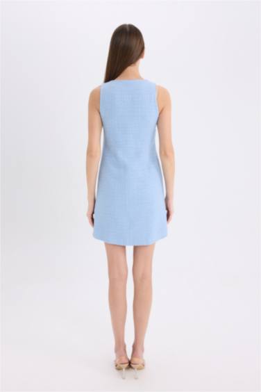 -%10V Yaka Kolsuz Düğme Detaylı Midi Elbise
