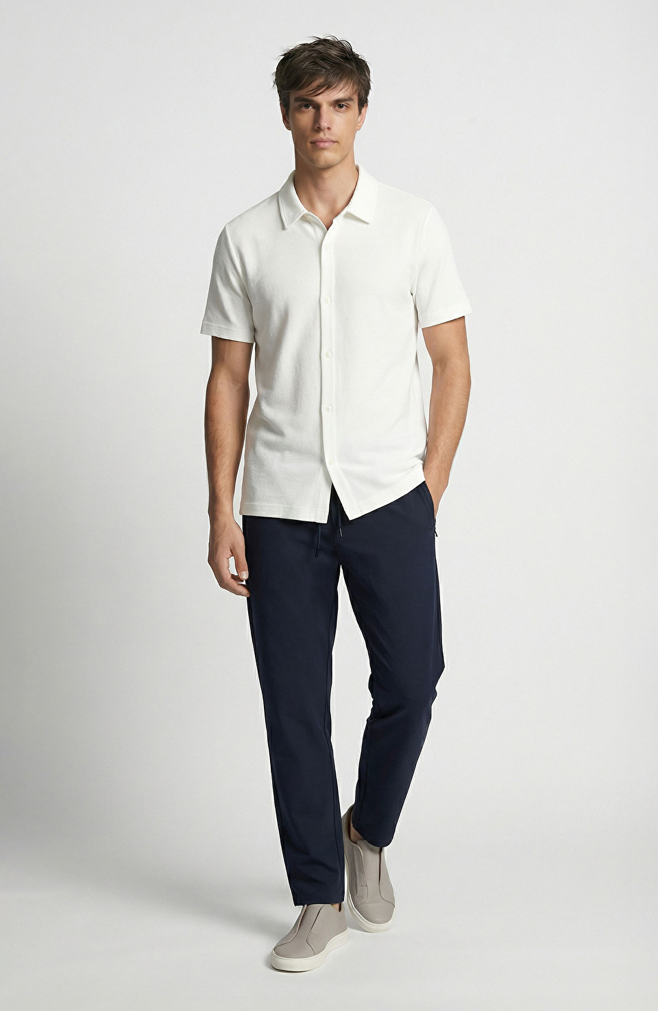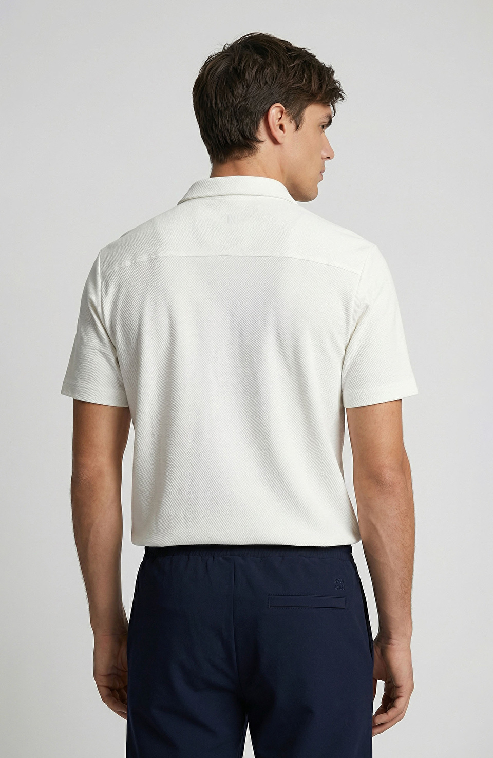 Ekru Jakarlı Kısa Kollu Gömlek