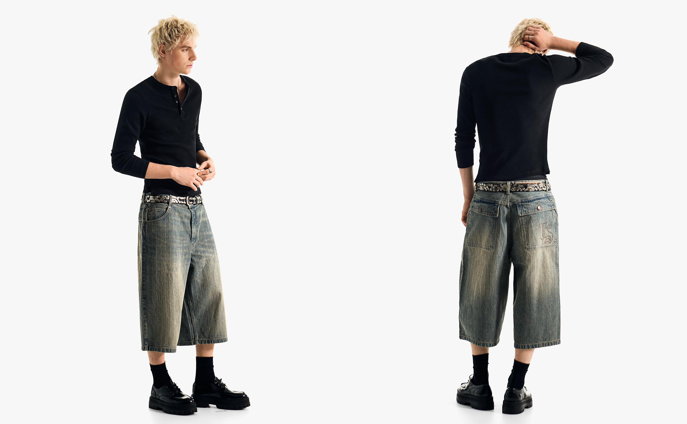 Super baggy fit denim bermuda — bershka | Oneri