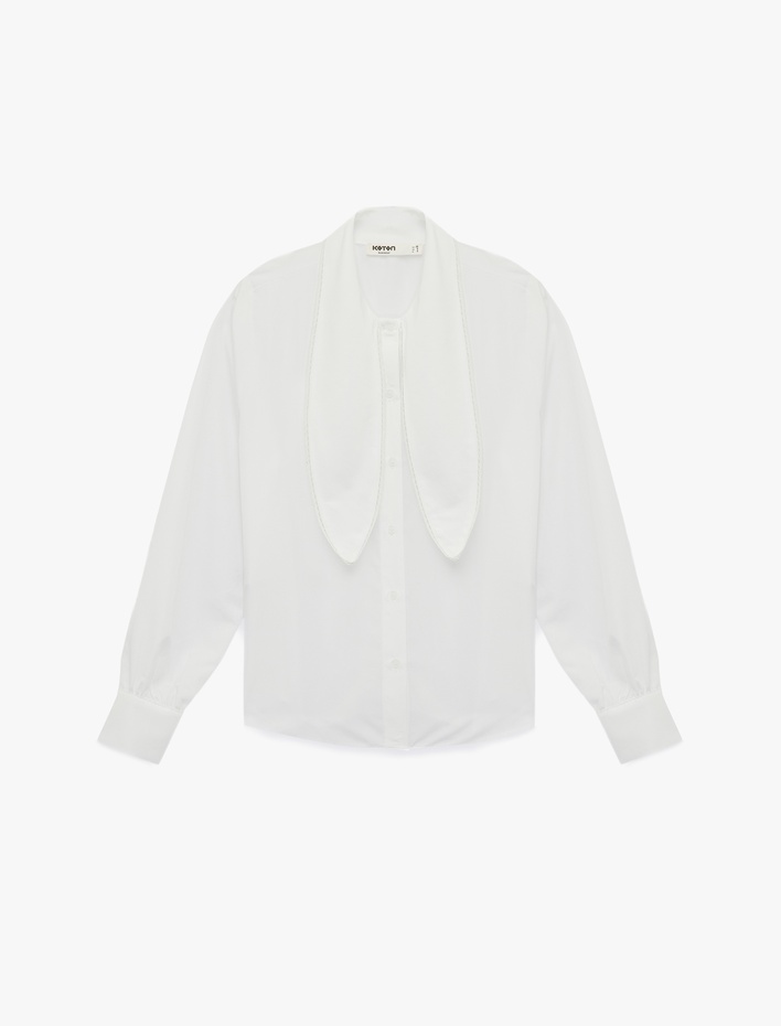 Regular Fit Düğmeli Uzun Kollu Fular Yaka Gömlek