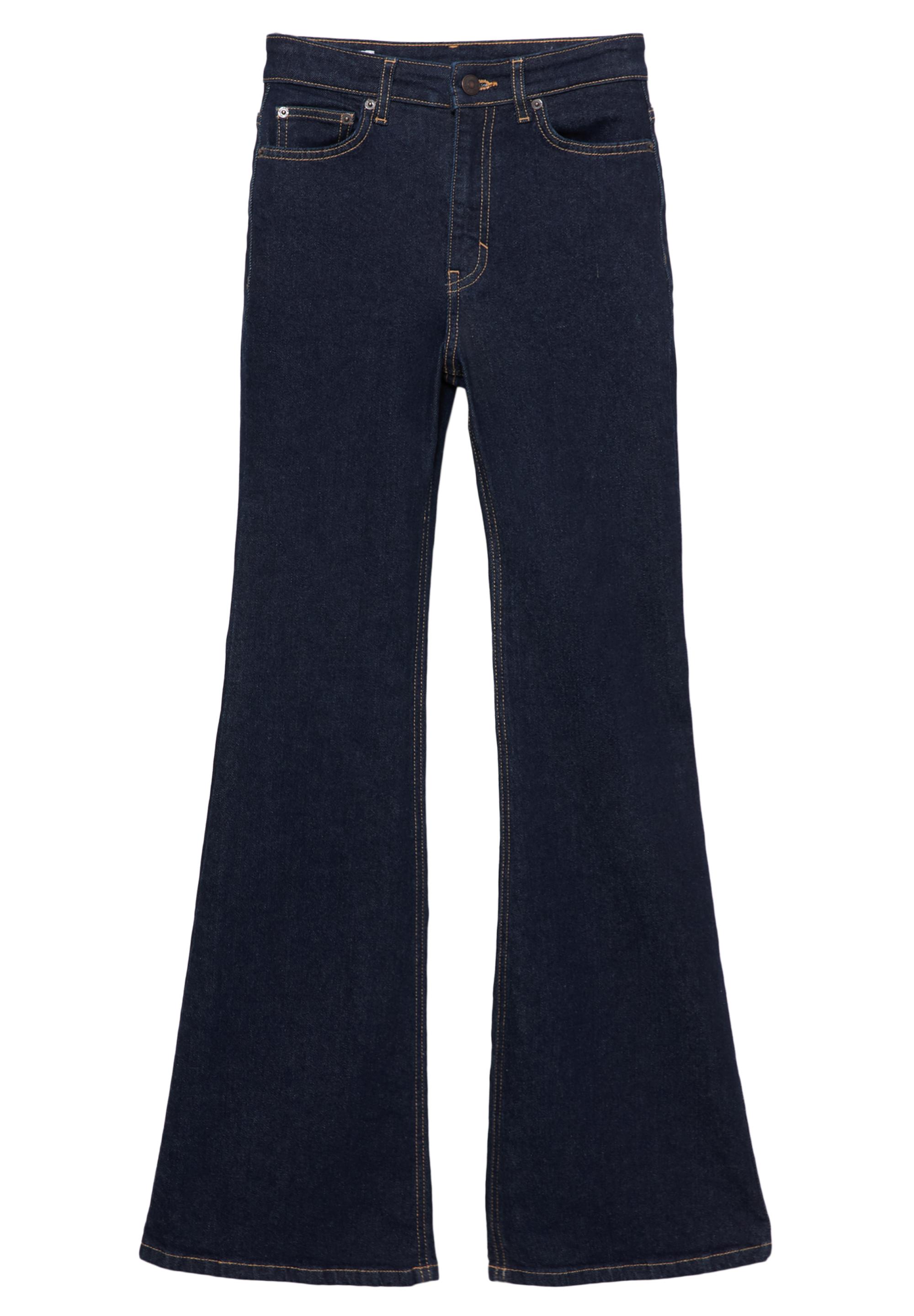 KESİM: Yüksek<br/>KUMAŞ: Esnek<br/><br/>Yüksek belli, beş cepli, kemer köprülü, düğme ve fermuar kapamalı, pamuklu çan paça jean.