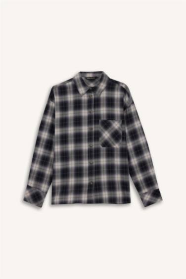 %100 Pamuk Oversıze Kareli Flanel Gömlek