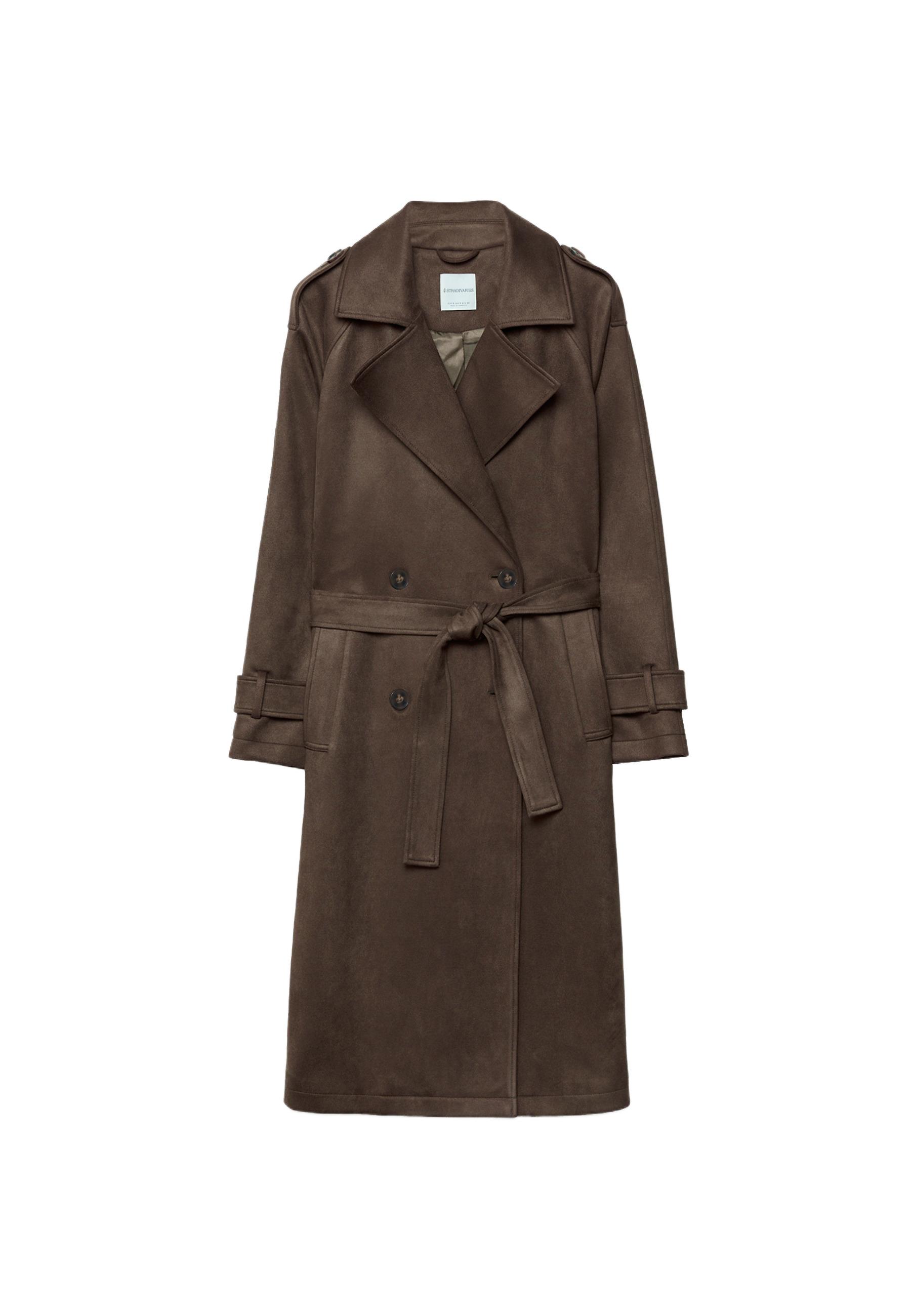 Uzun suni süet trençkot