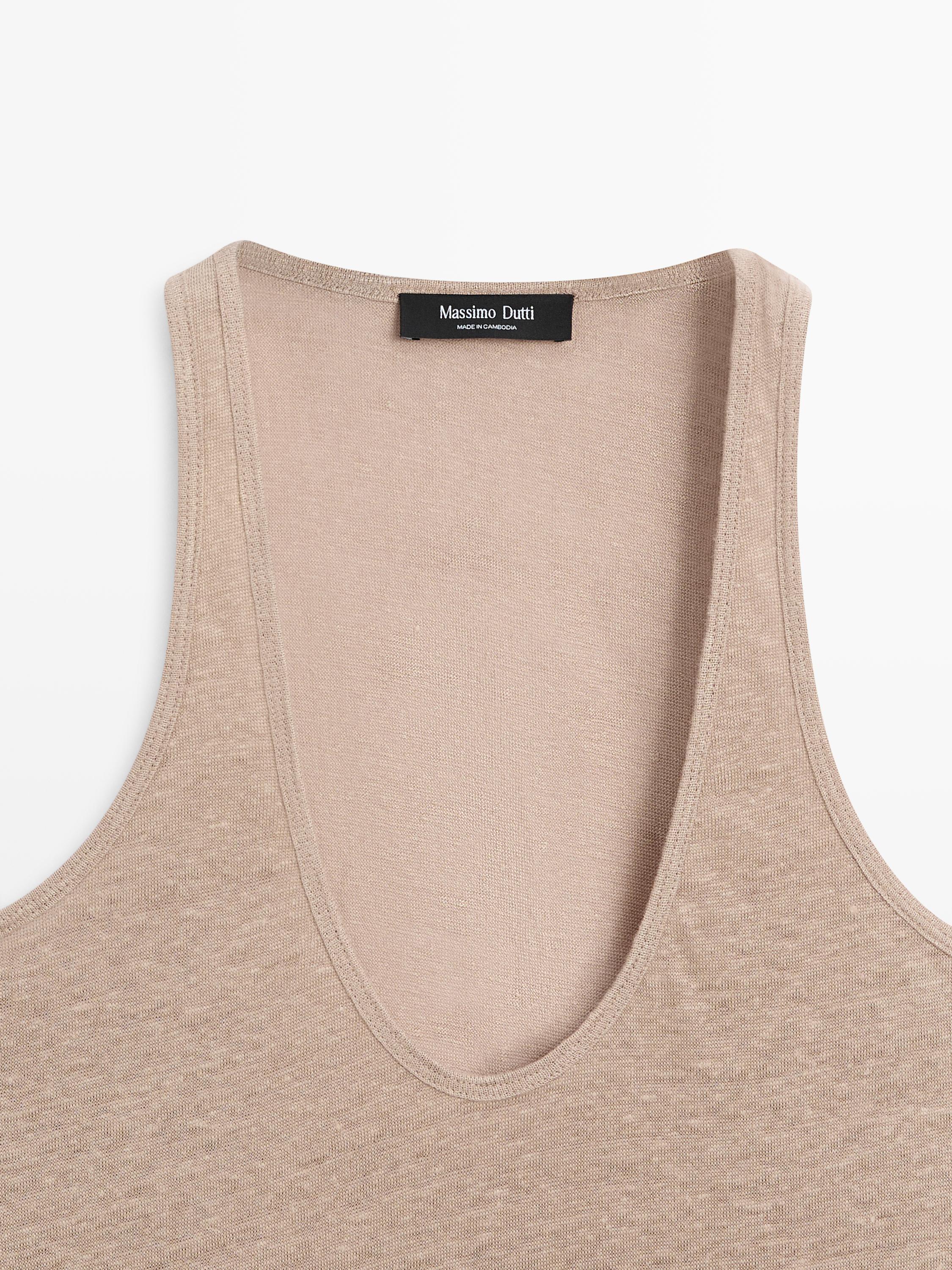 Beige ve heather taupe renklerindeki bu keten askılı top, temiz hatlari ve sade yapisiyla minimalist tarzda bir klasik. Uzun govdeli tipler icin idealdir; omuz hizasinda kesim ile dengeli bir gozum verir. Gunesli bir yaz sabahı veya serin bir sonbahar aksam yuruyusunda, beyaz tisortle ve yuksek bel jean ile kombinleme yapabilirsin. Daha da sade bir gozukmek istersen, siyah deri kemer ve beyaz sneaker ile tamamla. Ofis-sonrasi bulusmalarda veya rahat bir haftasonu gezisinde de uygun olur. Katlanmadan asmali, coklu katmanlama imkanina sahip oldugundan, iki mevsimde de kullanabilirsin. Ketenin doğal dokusu, her giyim secenegini daha dogal ve dengeli kilar.