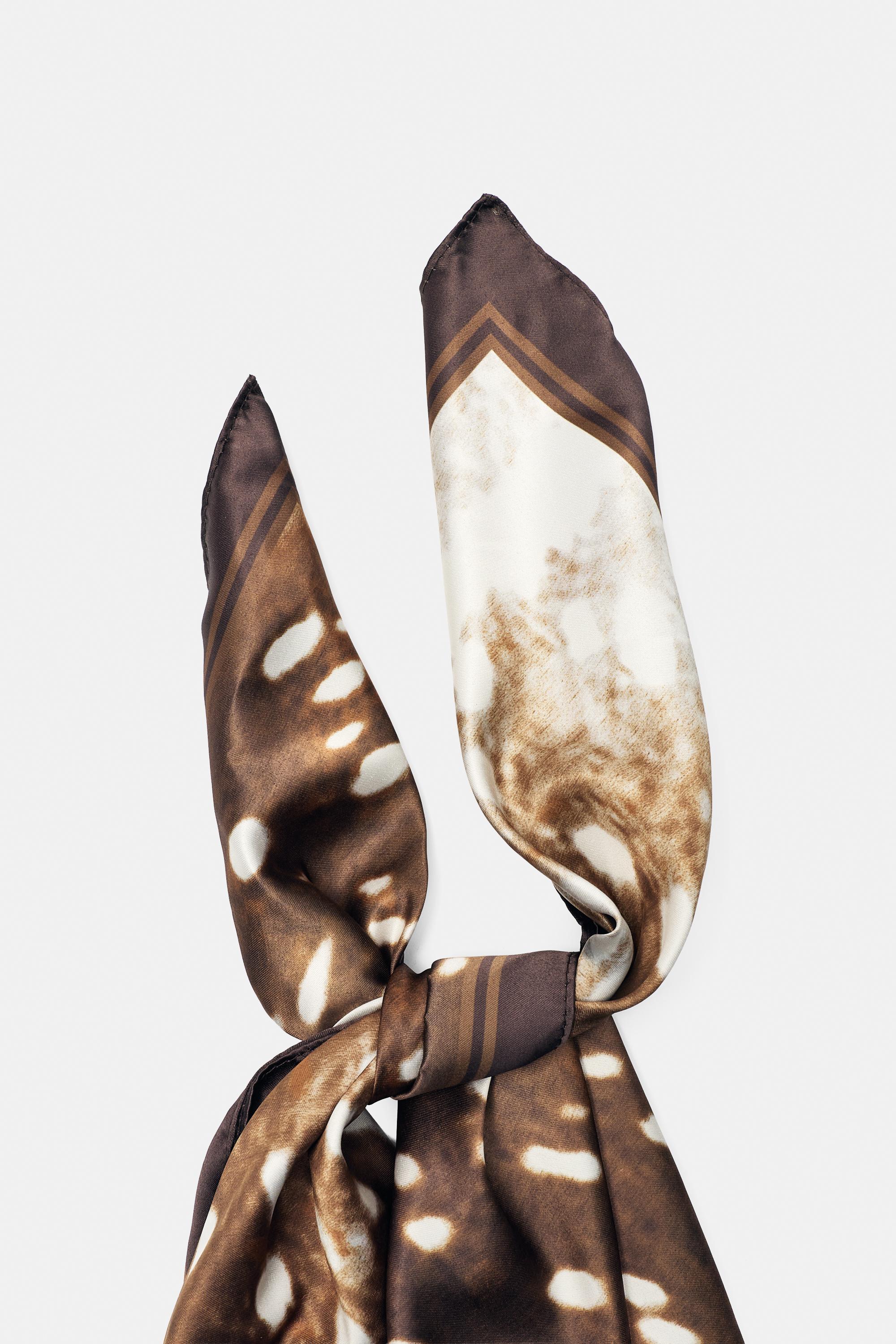 Saten yüzeyli geyik desenli bandana