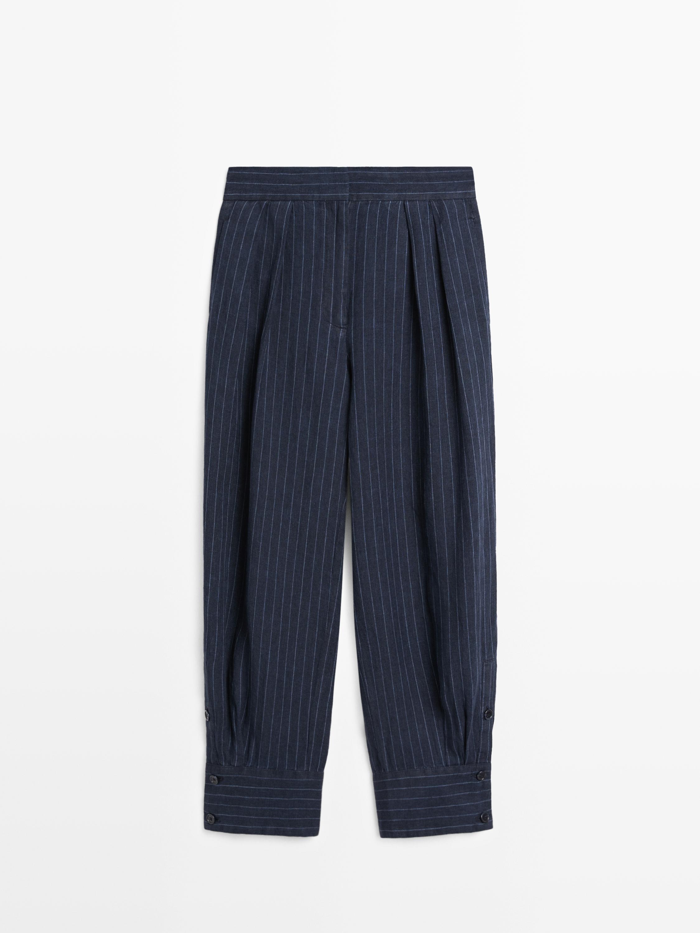 Çizgili keten şalvar pantolon