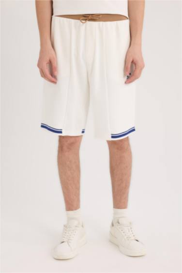 -%20Regular Fit Baskılı Düz Paça Şort