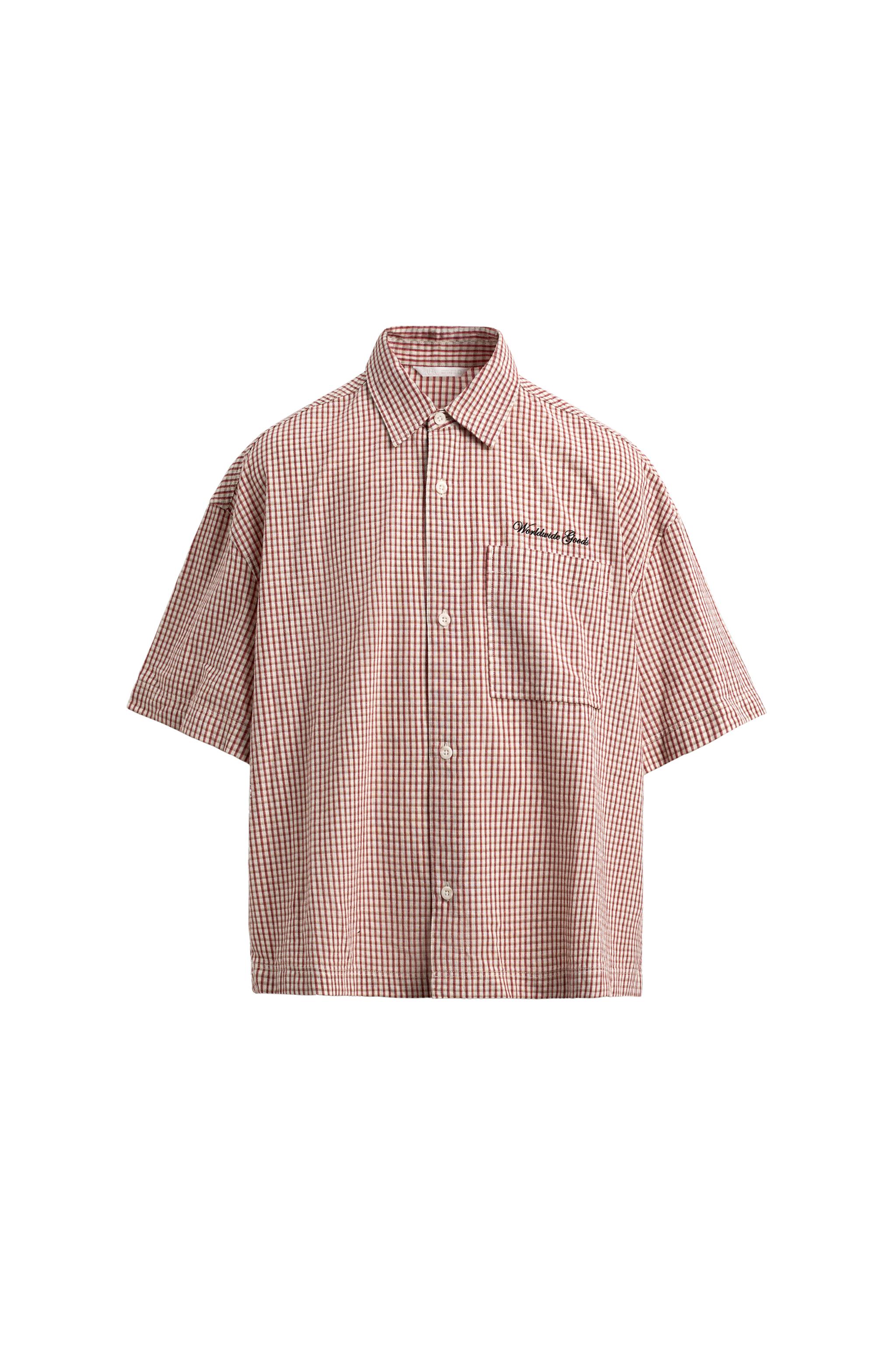 İŞLEMELİ KARELİ KISA KESİM GÖMLEK