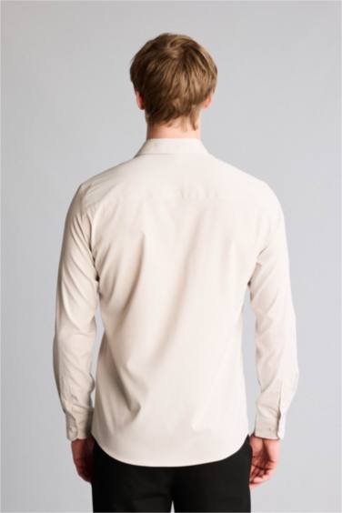 Slım Fıt Gömlek Yaka Baskılı Uzun Kollu Gömlek