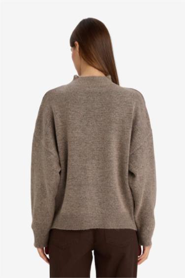 Oversıze Yarım Balıkçı Yaka Triko Kazak