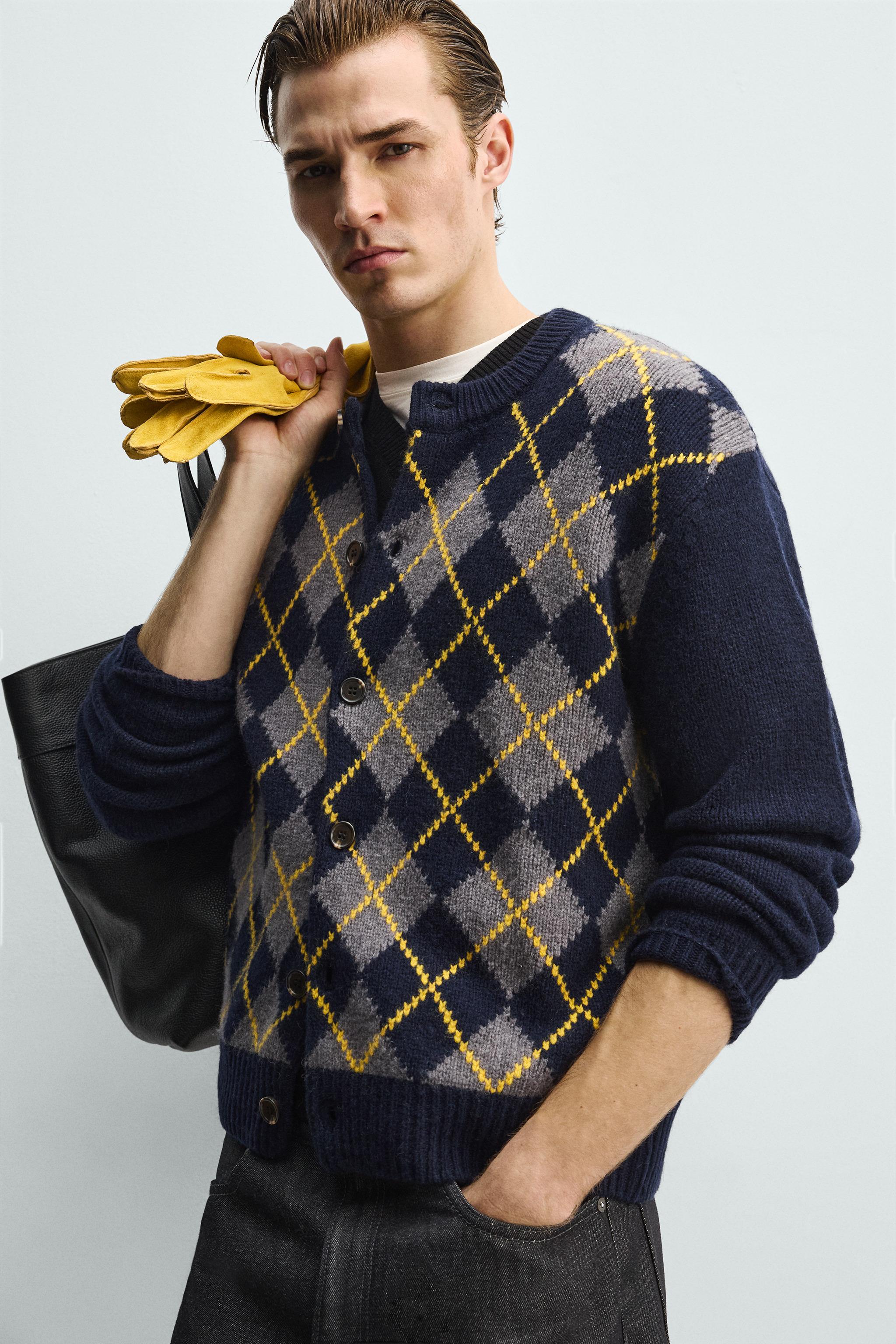 100% WOOL ARGYLE CARDIGAN — zara | Oneri