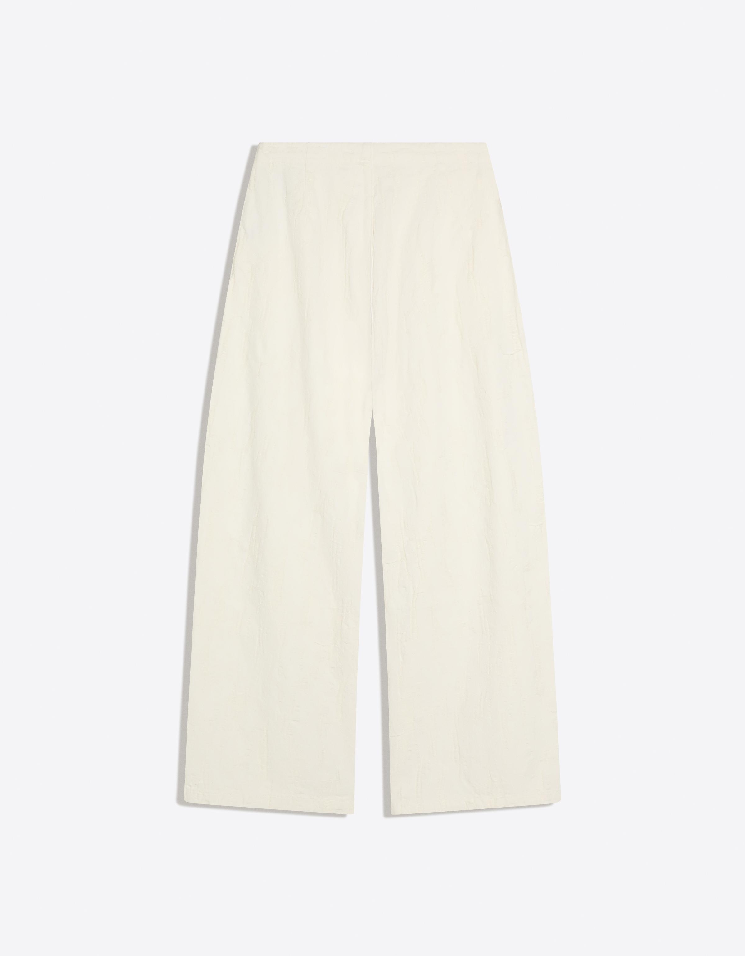 Bu off-white ve cream renklerindeki düşük bel pensli geniş paça jean, temiz ve sade bir estetikle dikkat çeker. Uzun gövdeli tipler için idealdir çünkü vücut hatlarını dengeli bir şekilde vurgular. Geniş paça modeliyle hem rahat hem de zarif bir görünüm sunar. Gün içinde ofis-sonrasi bulusmalarda veya hafif bir alışverişe çıkmada harika bir seçimdir. Beyaz tisörtle ve yüksek bel jeans ile kombinleme yaparak klasik bir günlük tarz oluşturabilirsin; aynı zamanda açık omuzlu bluzla ve yün overal ile de daha şık bir mevsimsel görünüm elde edebilirsin. Aksesuar olarak siyah deri kemer ve beyaz sneaker tercih ederek tutarlı bir renk paleti elde edebilirsin. Üzerine ince bir blazer giyerek daha serin bir havaya geçebilirsin. Kuru hava ve güneşli günlerde koltuk altına asılı durması için katlanmadan asmali. İç katman olarak da kullanılabilir, özellikle daha sıcak günlerde bol ceketin altında rahatça giyilebilir.