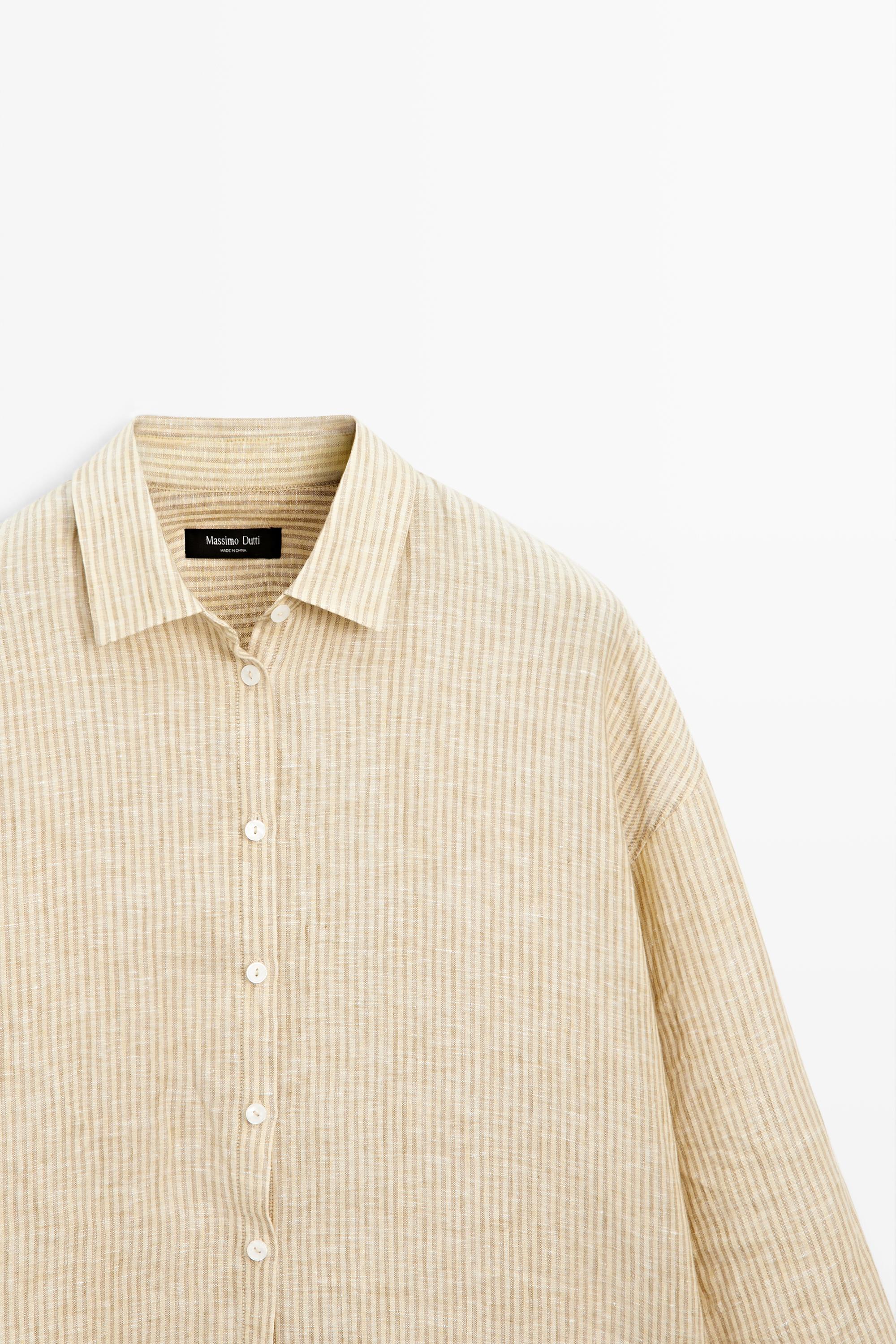 %100 keten çizgili gömlek