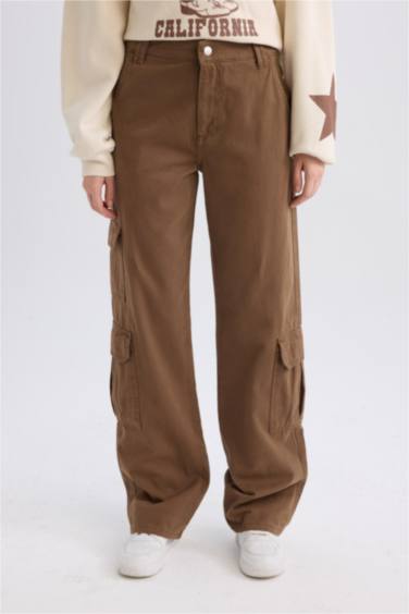 Straight Fit Gabardin Pantolon Kargo Cepli Normal Bel Düz Paça