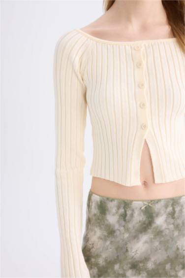 Fitted Açık Omuz Crop Triko Kazak