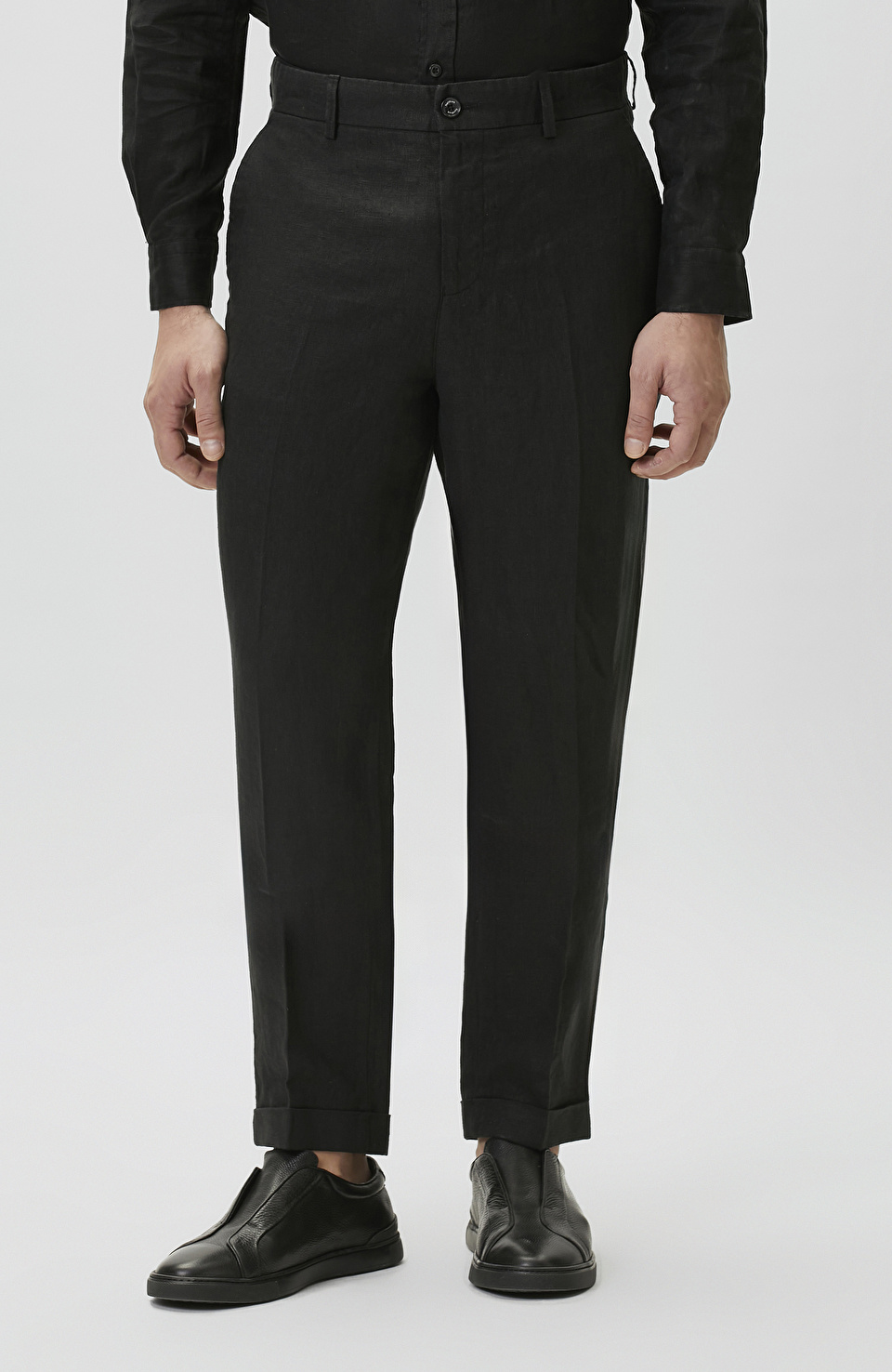 Siyah Keten Jogger Pantolon