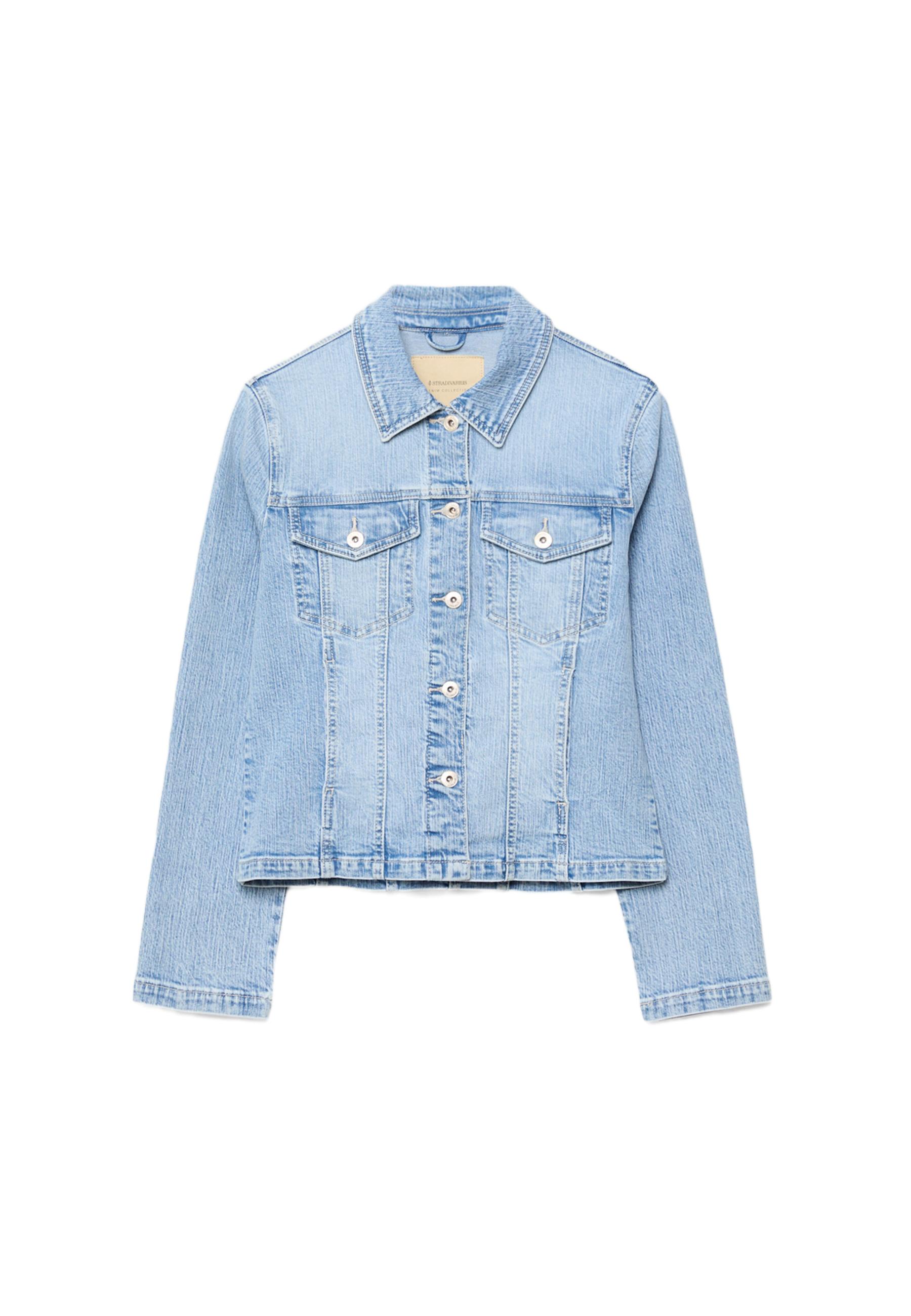 Beyaz veya hafif mavi denim ceket, temiz hatlari ve basit yapisiyla klasik minimalist tarzda bir parca. Uzun govdeli tipler icin idealdir; omuzlerini dengeli bir sekilde destekler ve vucudunuzu daha dengeli gorunum saglar. Gunesli bir gunde parkta yuruyus yaparken ya da ofis-sonrasi kahve bulusmasinda akilci bir secim. Beyaz tisortle ve yuksek bel jean ile kombinleme, sadece butunlu suyu verirken, hafif mavi bir bluzla da daha yumusak bir hava yaratabilirsin. Siyah deri kemer ve beyaz sneaker ile tamamlayarak hem modern hem de pratik bir gozukursun. Katlanmadan asmali, nemli ortamlardan uzak tutmali, kullanildiktan sonra hafif surekli havalandirmali. İç katman olarak da kullanilabilir, hafif bir esneklik sunar.
