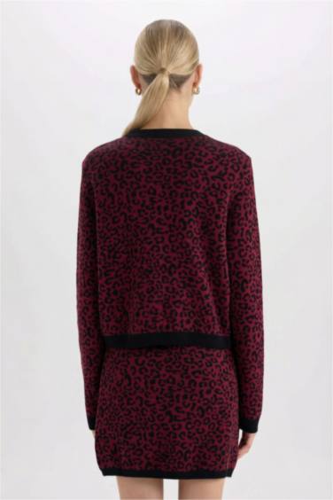 Regular Fit Bisiklet Yaka Leopar Desenli Düğmeli Triko Hırka